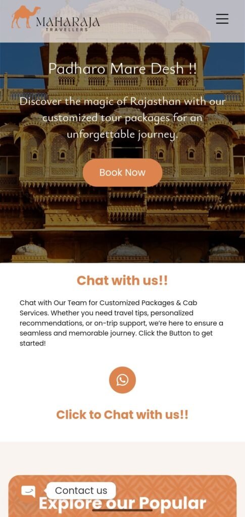 Maharaja Travellers is a luxury taxi and Rajasthan tour service provider based in Jaipur. The owner, Nand Singh Ji, wanted a professional and mobile-friendly website to showcase their fleet, promote exclusive travel packages, and increase online bookings.